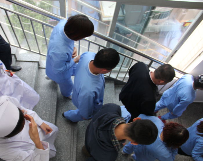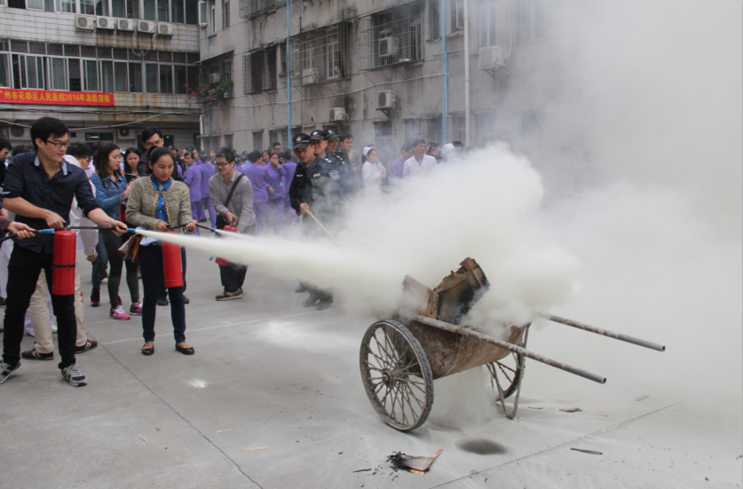 此次演习分为火灾模拟场景演练和灭火器操作练习两个部分。下午3点,全体人员在7号楼后院停车场集合,首先,主管医院消防工作的孙副院长亲自主持了本次消防演练,强调了消防安全的重要性,保卫科叶科长对演练流程进行讲解说明,随后宣布演习开始。