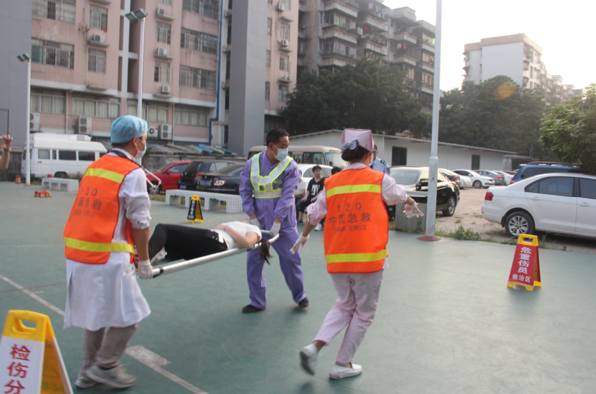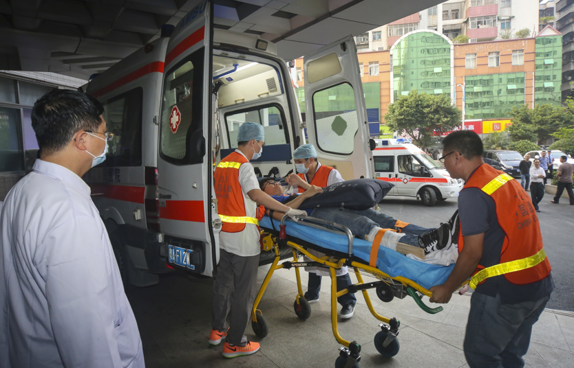 事故现场共检出伤员10人(1人死亡,3名重伤,6名轻伤),经过医疗1队和医疗2队的迅速、有序的现场检伤分类、处置和转运,各伤者按由重到轻的次序被迅速送往我院急诊科。