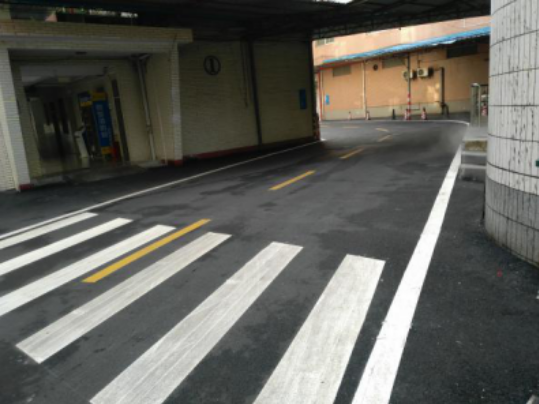 院内路面重新铺上沥青,车道及功能区域划分更明确