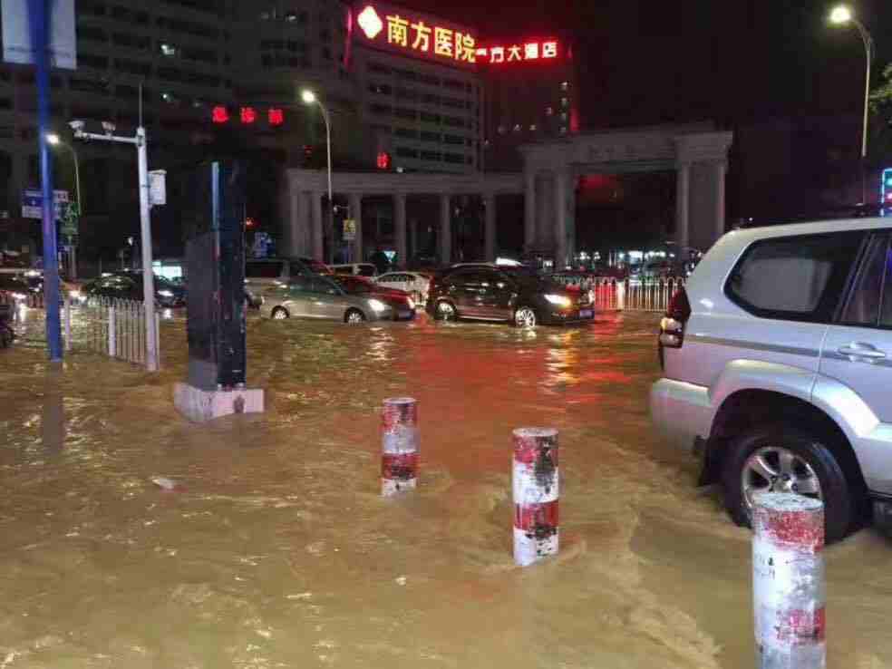 当时,气象台已经发布了暴雨黄色预警信号,但没有预料到的是,平时只需要三四十分钟的转送路程,因为广州连日来的大雨,南方医院附近的道路积水严重,有两辆车因涉水行车导致熄火,整条道路被堵得水泄不通,救护车被困在距离南方医院300米的路上动弹不得……