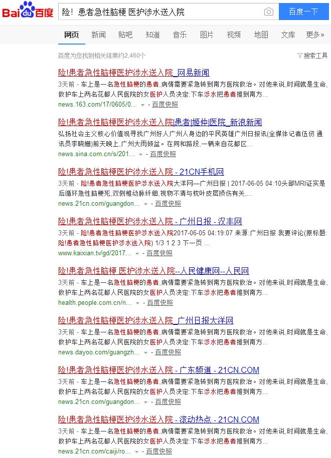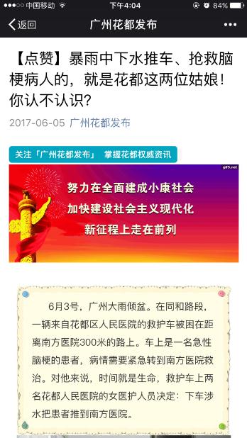 6月5日,《广州日报》刊登《险!患者急性脑梗 医护涉水送入院》