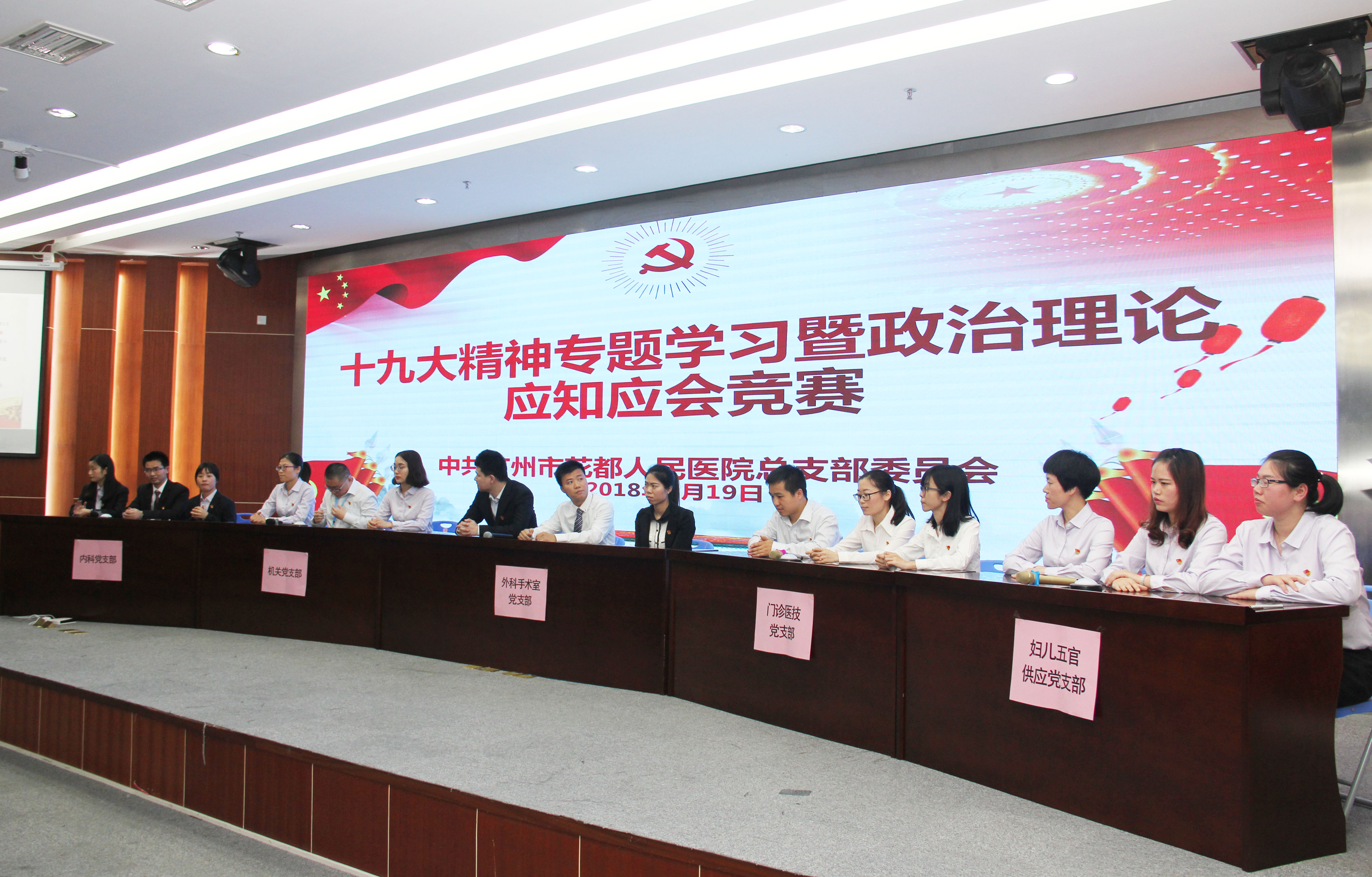 为了深入学习贯彻落实党的十九大精神,加强党员干部队伍思想建设,坚定政治方向,激发党员和员工的学习热情,我院结合各级政府学习十九大及十九届三中全会文件精神的要求,于4月19日下午,举办了“十九大精神专题学习暨政治理论应知应会竞赛”。活动得到了卫计局党委的高度重视和支持,全院共340多名党员参加了此次活动。