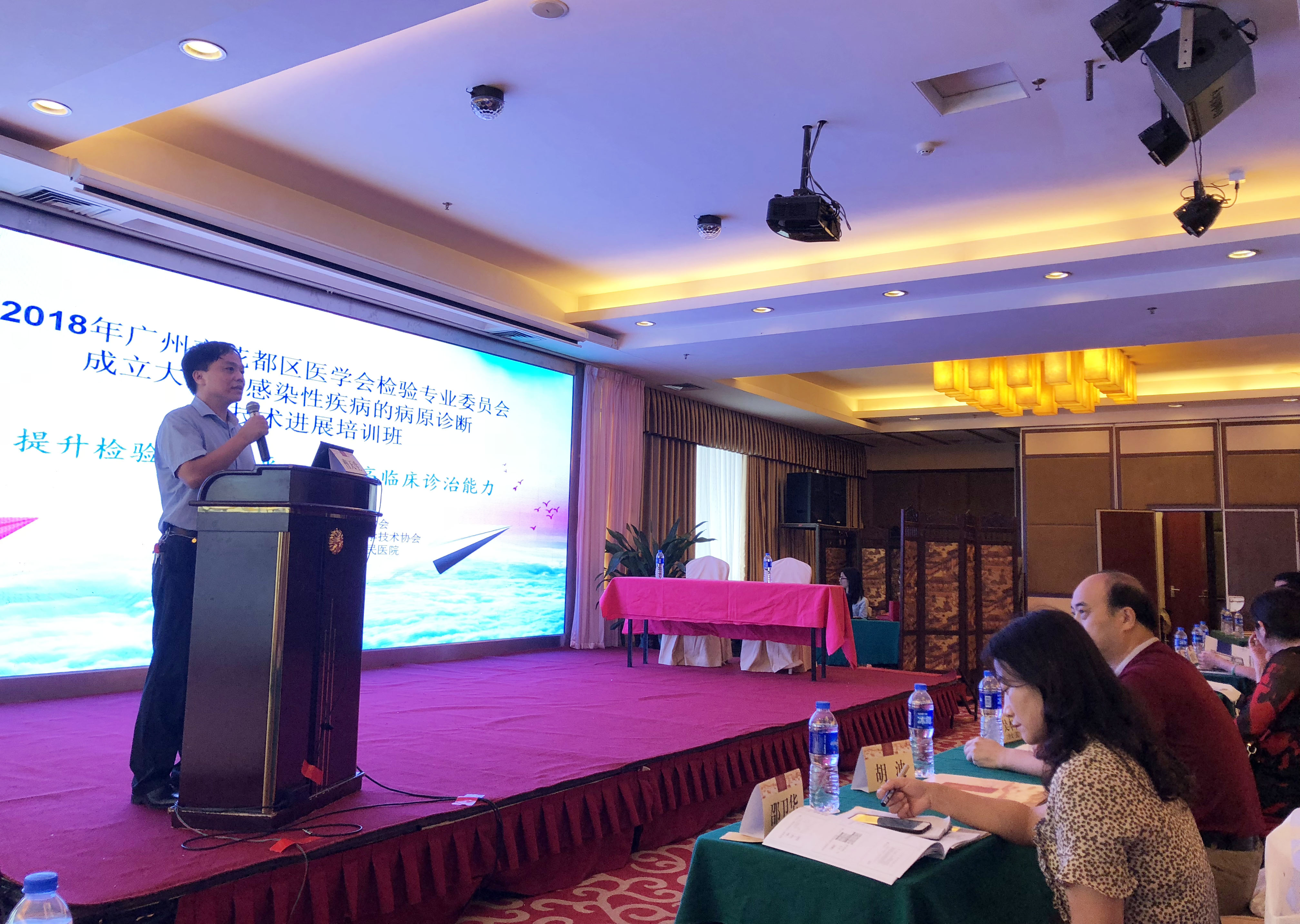 大会邀请了广州市花都区医学会虞志忠会长、花都区科学技术协会姚志英主席、广州市花都区医学会邵卫华副会长、广州市花都区人民医院曹天生副院长、广东省临检中心的邹伟民主任、广东省中医院检验医学部学术带头人庄俊华主任、中山大学附属第三医院检验科胡波主任、广东省中医院输血科吴新忠主任、广州市医学会检验分会彭湘明主委等前来指导。同时,此次培训班还邀请了多位省内知名感染性疾病专家作为授课嘉宾。