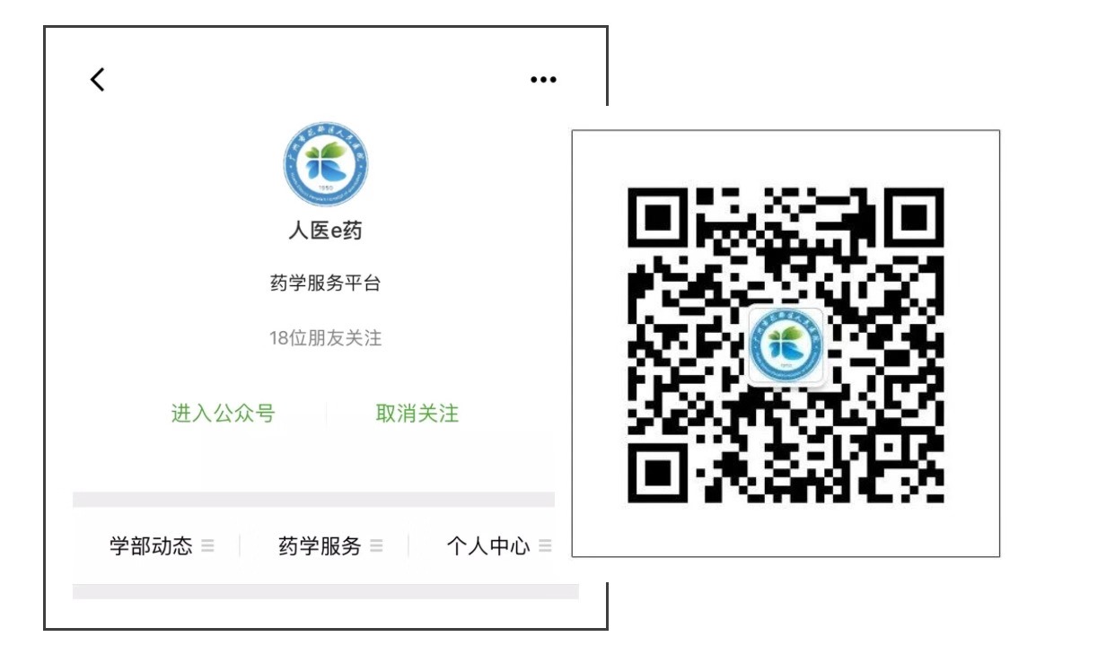 1.打开微信,搜索“人医e药”或扫描以下二维码,关注微信公众号。