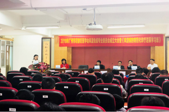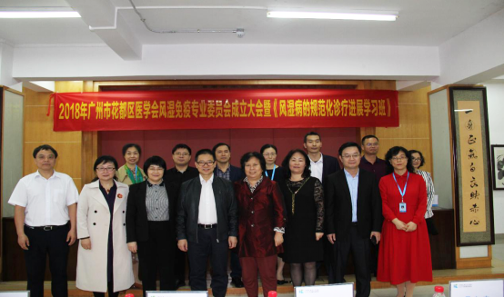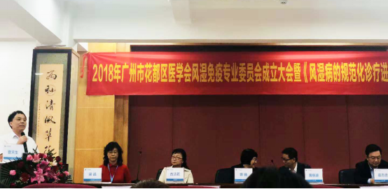 2018年11月25日, 广州市花都区风湿免疫专业委员会在我院成立,同日召开了首届风湿免疫学学术会议。会议邀请了中华医学会风湿病学会副主委黄慈波教授及国家级重点专科中山大学附属第三医院古洁若教授进行了重要讲话和专题演讲,还邀请了国内风湿免疫专科著名专家学者进行了专题讲座。