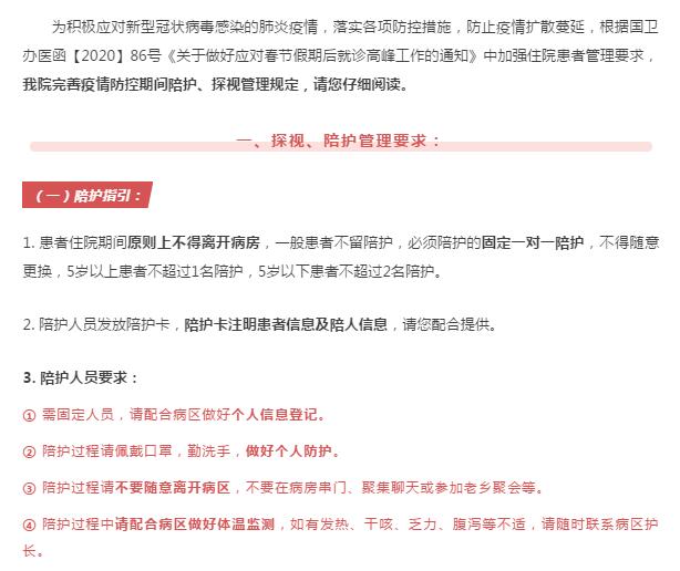【公告】区人民医院疫情防控期间住院患者陪护、探视管理规定
