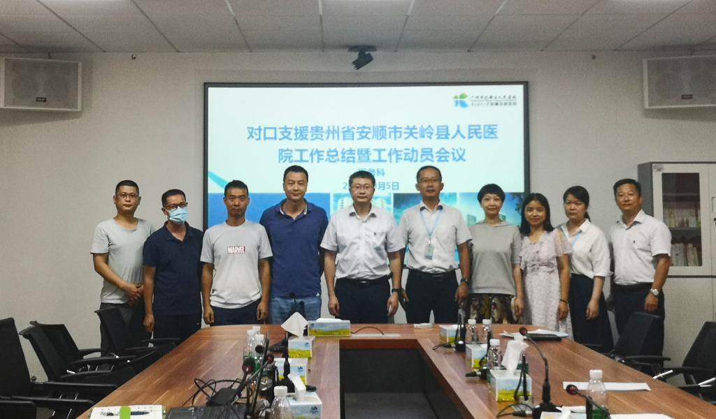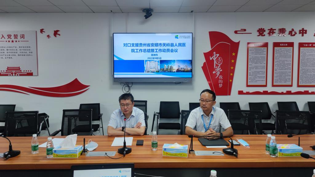 9月5日上午,广州市花都区人民医院对口支援贵州省安顺市关岭县人民医院工作总结暨工作动员在总院10号楼2楼会议室召开。医院党委副书记、院长叶家骏,副院长张文伟,总会计师徐间萍出席会议,医院相关职能部门负责人、派驻支援医师代表等十余人共同参会。会议由医务科科长黄滨主持。