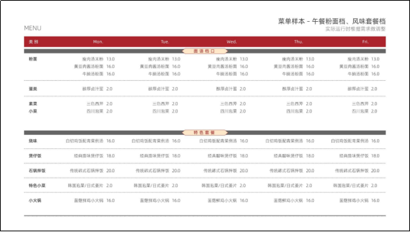 ▼风味套餐(实际运行时根据需求做调整)
