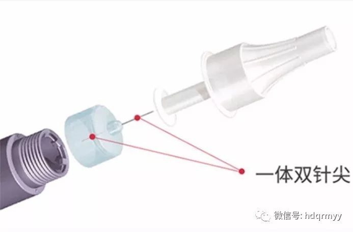 听到这里,我院药学部的药师告诉大叔别着急,然后从抽屉里拿出了一盒胰岛素针头(上图1),麻利地把大叔原来套在胰岛素笔注射器上的针头卸下来,换上了新的针头,排气、调刻度、按压一气呵成。不一会儿,针头上就挂着一滴晶莹剔透的胰岛素注射液液滴啦。