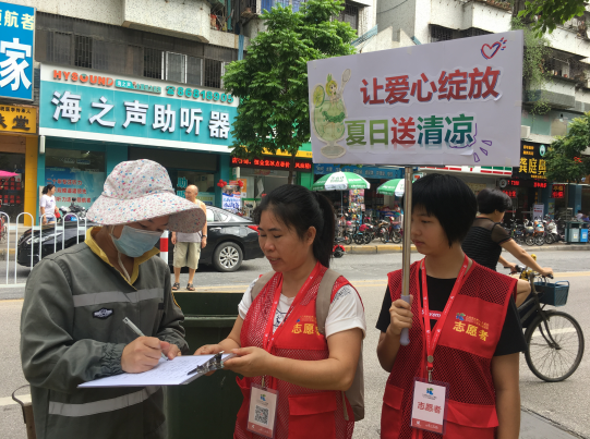8月17日,花人医志愿者走到三个院区,给那些不畏高温酷暑、仍然坚守在生产、基建一线辛勤工作的本院户外工作者送去夏日清凉、送去人文关怀。关爱范围扩大到院外环卫工人、交警同志、城管同志、外卖快递小哥等,在三个院区沿着指定路线为高温下仍奋斗在一线的户外工作者们免费提供清凉饮料,希望能给他们送去一丝清凉。