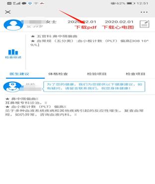 4、点击“下载PDF”可下载电子版体检报告及心电图
