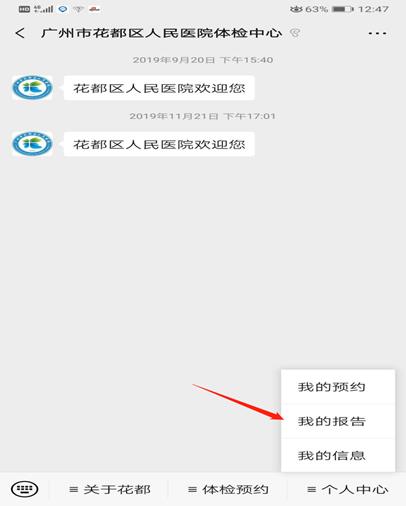 扫码关注“广州市花都区人民医院体检中心”公众号
