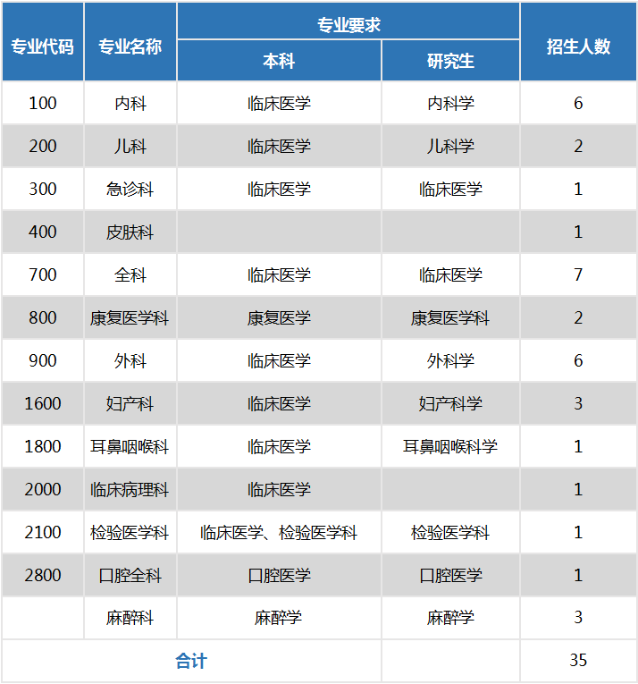 4、考核录用:根据医院考核及个人志愿,确定培训对象,额满为止。未招满额的培训学科,根据报名人员自愿服从调剂培训方向进行重新分配。